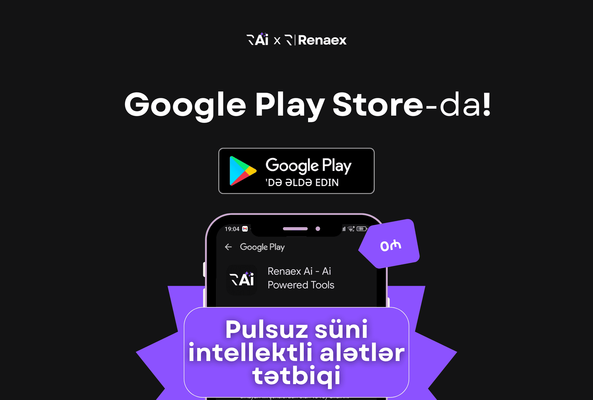 Azərbaycanın ilk və tək süni intellekt dəstəkli alətlər tətbiqi olan "Renaex Ai" 23 Aprel 2025 tarixi etibarilə dünyanın ən böyük Android tətbiq bazarı olan Google Play-də yayımdadır!